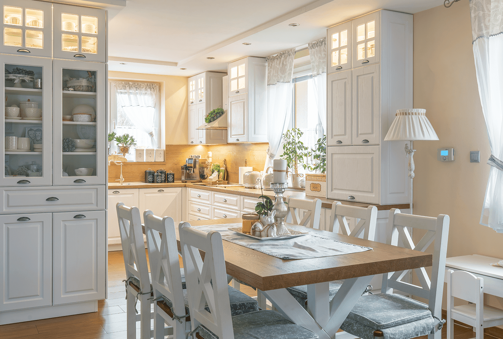 Tento nábytok na mieru sa vyznačuje svojimi jemnými detailmi v podobe oblých tvarov na dvierkach, ktoré dopĺňajú ozdobné kovové úchytky. Provence štýl je známy svojou funkčnosťou a eleganciou. Spája sa s juhovýchodným regiónom Francúzska, a to hlavne francúzskym vidiekom. Vidiecky pokoj a hra štruktúr dotvárajú rozprávkovú atmosféru rodinného domu. Interiér Vás prekvapí nielen svojim čarom, ale prinesie vám domov trochu stredomorského šarmu, pohodlia a harmónie.