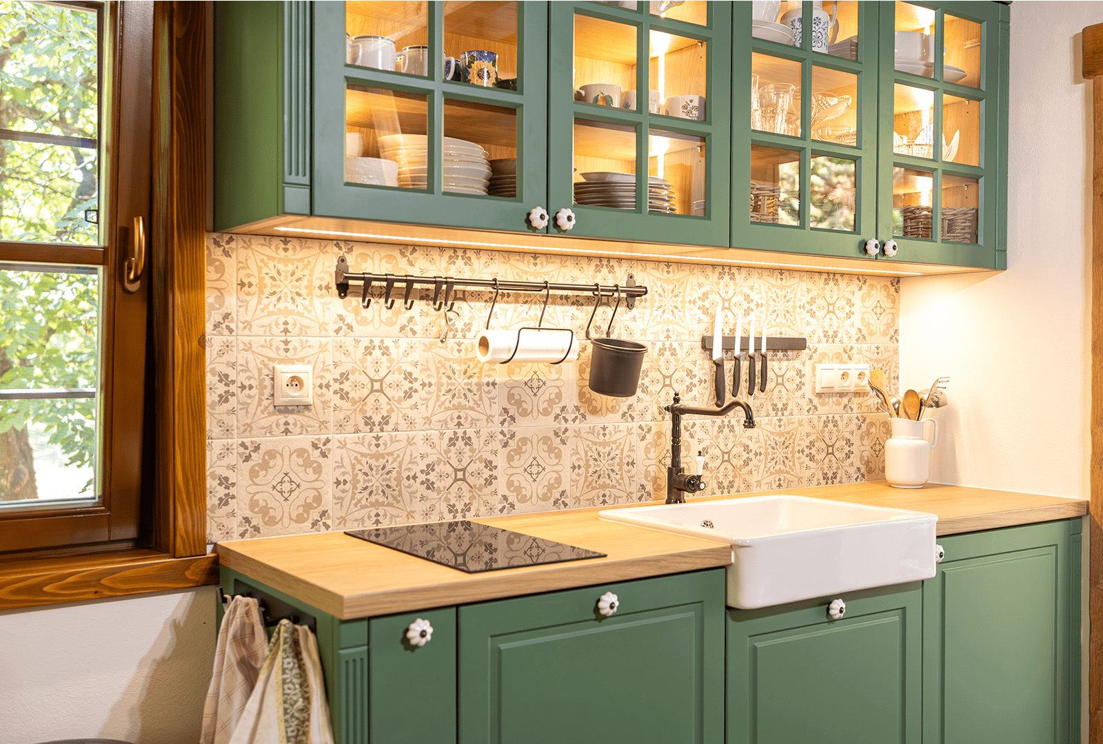 Vidiecky štýl DALNO kuchyne sa pretavil do novej, útulnej realizácie nábytku. Interiér chaty sa nesie v tradičnom duchu a táto provence kráska tu dokonale zapadá. Čaro vidieku sa objavuje na prevedení dvierok, vitrín, aj na bielych úchytkách. Lakovaná zelená farba kuchynskej linky oživuje celý priestor. Použité vysoko kvalitné materiály Evermatt Zelený a Dub Hickory.